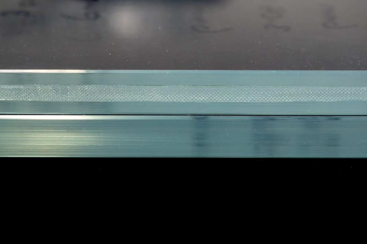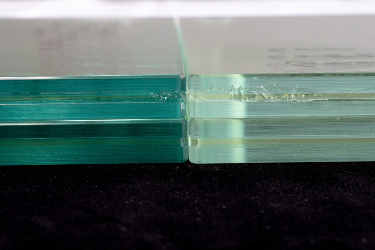 We cut up this sample piece of VueSafe 15.04 SGP Edge+ with a water jet. Take a look at the edge alignment on both pieces of glass! No slippage, no steps, just perfectly aligned. Also look the the Edge+ SGP, its not convex, its not concave, its perfectly flat. Non of our competitors would be willing to do this test and put the glass under a microscope. This is why you need to ask for Edge+ on your next Custom Toughened Laminated panel.