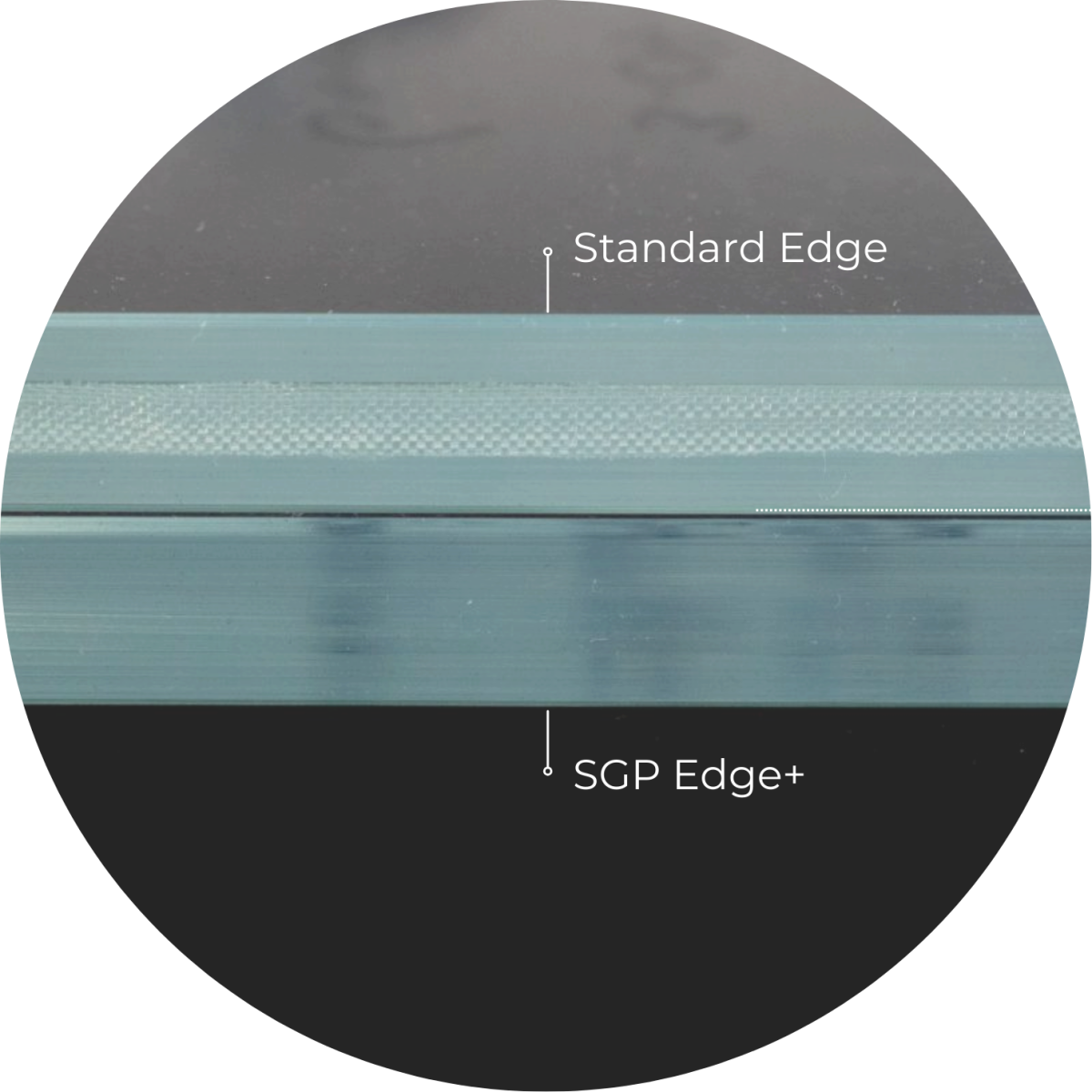 The SGP Standard Edge has beautifully flush glass and the SGP has a frosted cross hatch appearance. This finish is pleasing but is best used in applications that cover the edge work or where the edge work cannot be seen.