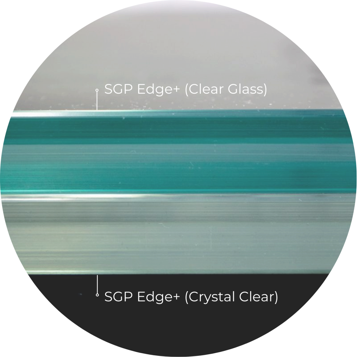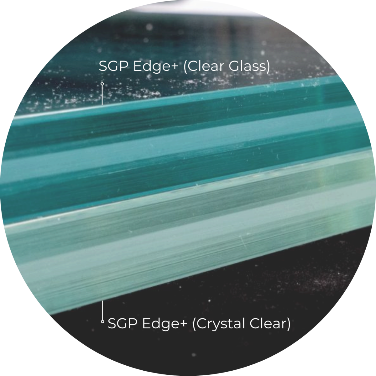 The SGP EDGE+ finish makes the laminated glass look like one piece, instead of 2 pieces of glass and 2 pieces of SGP. It gives a flush, glass like appearance to the edge. This finish is extremely aesthetically pleasing and can be used in all applications where the edgework can be viewed. This finish is ‘The Rolls Royce’ of Laminated Glass.