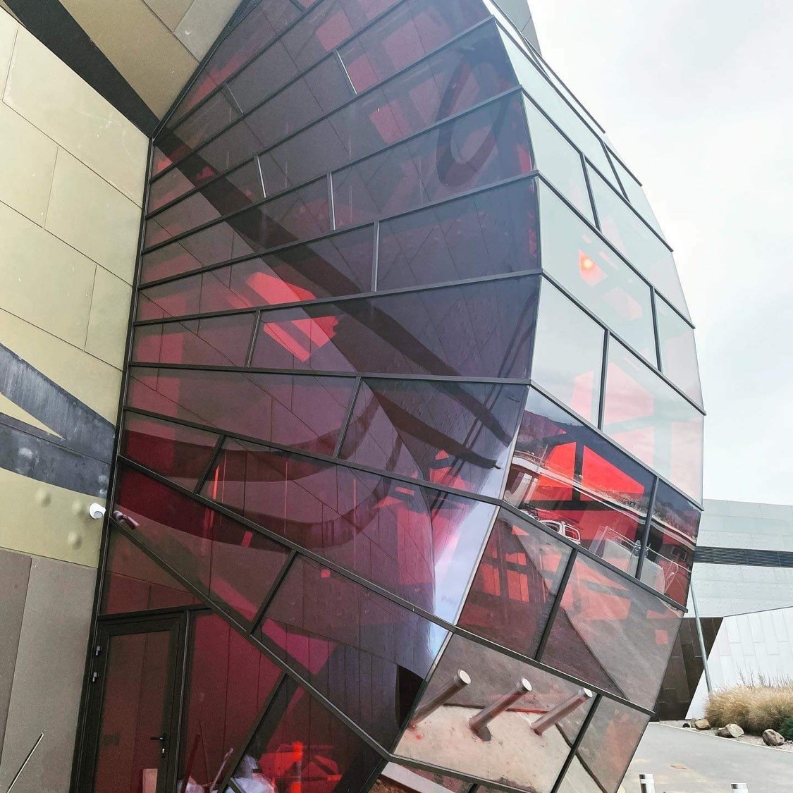 Products Used: 6mm Starphire Toughened/0.76 Clear PVB, 0.38 Vanceva Golden Light, 0.38 Vanceva Deep Red