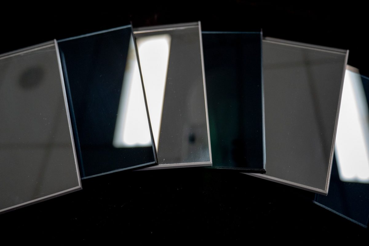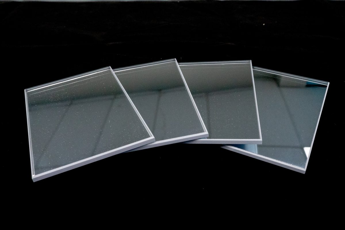 TuffSilver Crystal is a toughenable highly reflective glass, that when painted looks like a normal annealed silver mirror. The semi-soft reflective coat is applied to a Low Iron Glass, to make the clarity even sharper. This means you can get the look of a silver mirror in a toughened state. The reflective surface is on the back of the glass and is directly painted onto, using a grey paint. This reflective coating is also available on an Euro Grey glass, giving a smokey grey mirror effect, this is called TuffSilver Grey.
